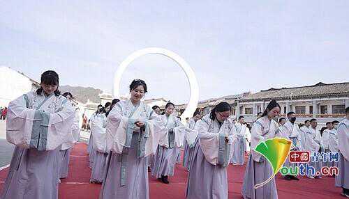 活动在金声迎祥中拉开了序幕,百余名参与者身着汉服,从学习汉文化传统礼仪开始。一名男生和一名女生组队,共同参与“穿汉服、行汉礼”“木犊传情”“射以观德”“飞花传情”“雅歌投壶”“国风汉韵”“赏习茶艺”“茶乐青溪”等一系列趣味互动游戏。