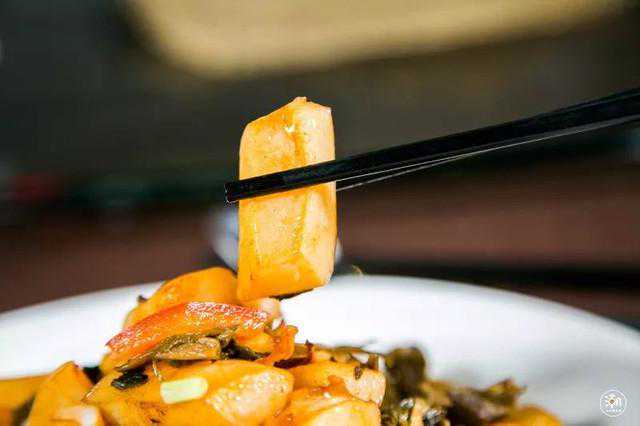 除了鲜嫩的梅子鱼,搭配的豆面也十分爽口,煮过的豆面不会有糊烂的感觉,而且嚼劲十足。