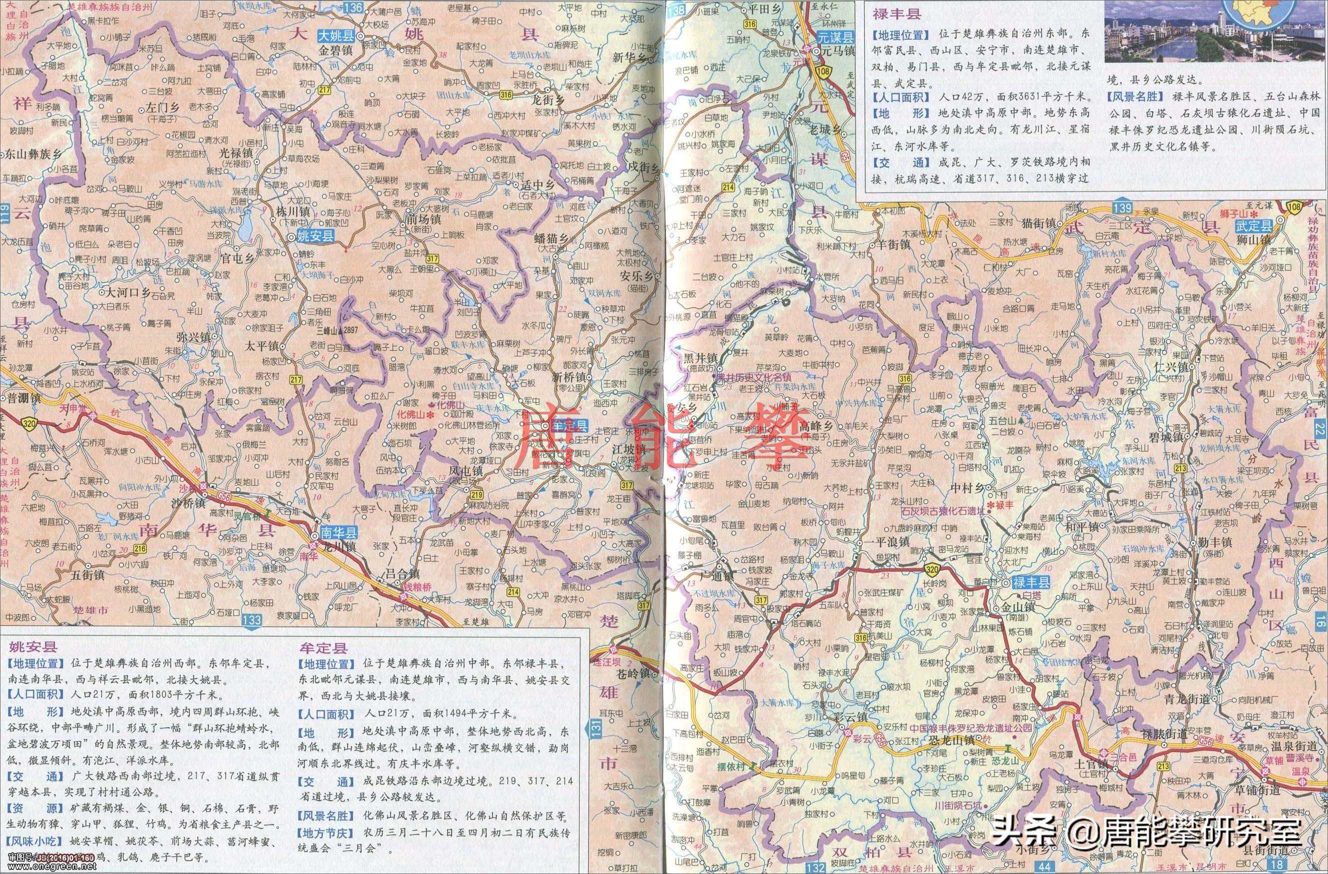 姚安县、牟定县高清乡镇地图及简介