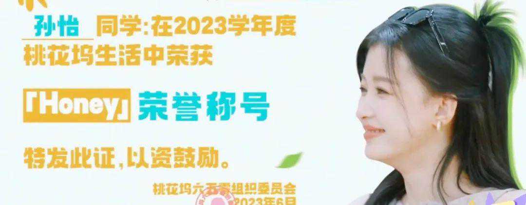 《桃花坞3》里,给孙怡颁的奖是2023年度桃花坞第一“哈尼”称号,会根据气氛随时随地哈哈笑。