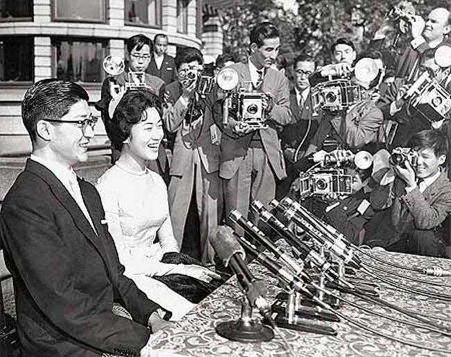 ▲1960年,贵子和永久在结婚后接受访问。