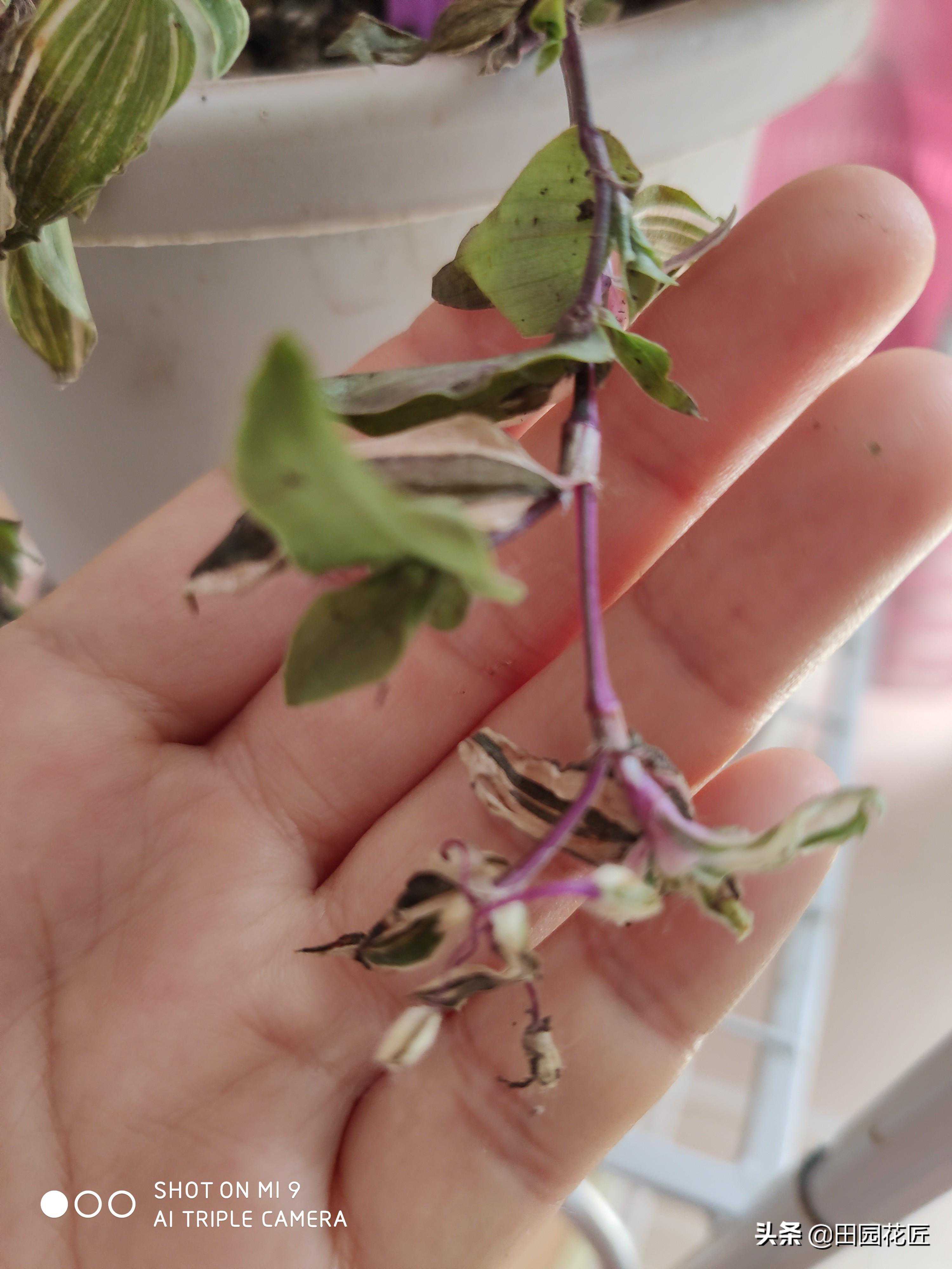所以小编又搬回楼下管理了,小编家房子朝东,春季早上只有2个小时左右的太阳,而且早上太阳比较温和,虽然不会灼伤叶片但是光照时间不足,会导致新买的婚礼吊兰不出锦。也就是叶片还是绿色和嫩绿色相间,没有出粉色,而且叶片会比较稀疏枝条也很细弱容易断。