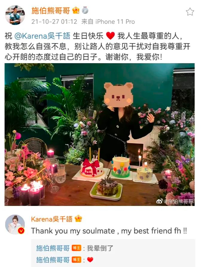 在吴千语与施伯雄交往的阶段,张馨月曾通过发文含蓄地批评吴千语,并称自己遭受了女方粉丝的攻击。