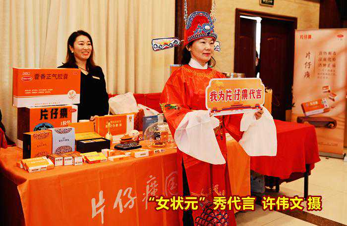 “这是我参加工作以来第一次穿古装参加公益表演,感觉挺高兴的。”江苏斯缇尔新材料科技有限公司副总王洁女士,为配合活动总策划许伟文体现老中青三代公益人传承中华民族优秀文化的安排,自费购买了一套“女状元”服饰。王洁还穿着状元服,在在片仔癀国药设在现场的2.4米展台前,秀了一把“代言”。