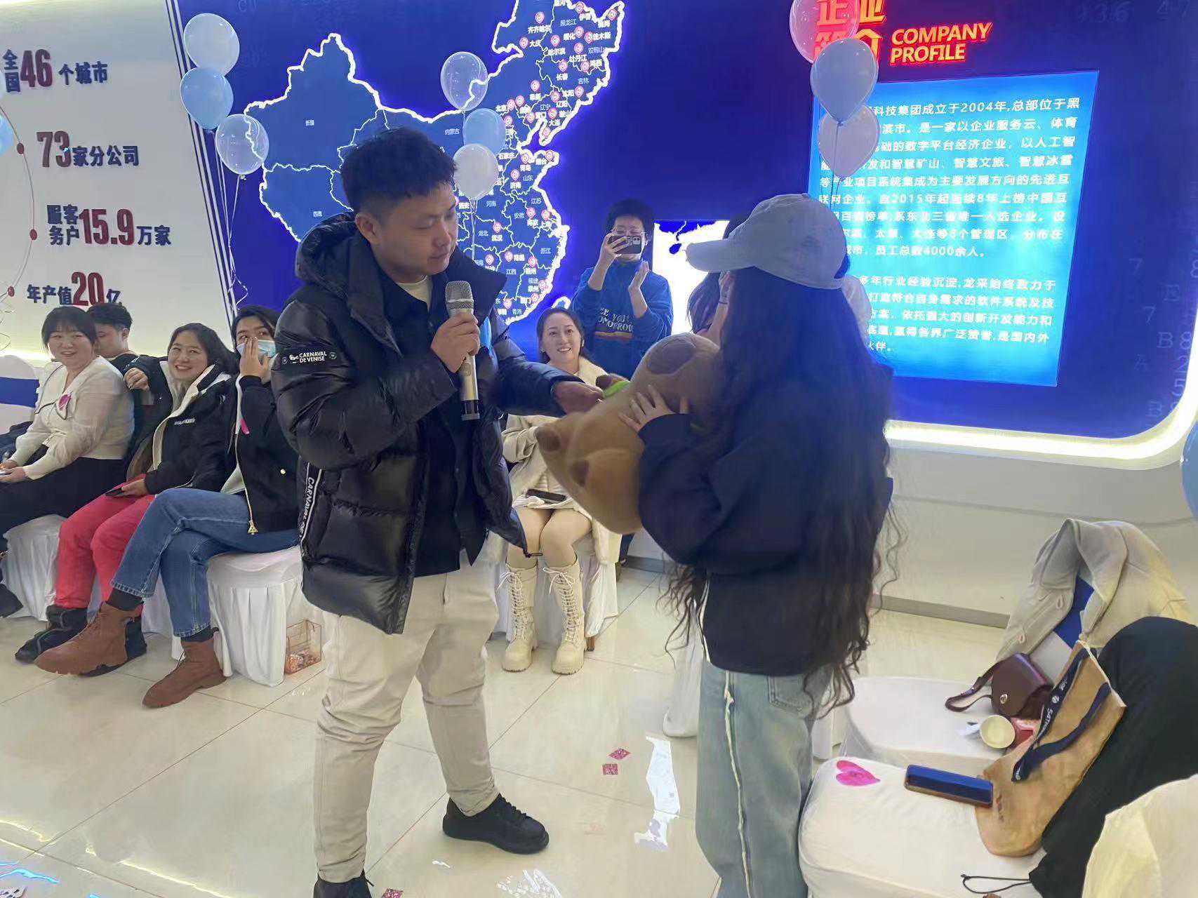 在才艺展示、“缘份天注定”、“爱情信件”等游戏以及真情告白等环节,参与人员积极互动,现场气氛非常热烈。外场速配与内场嘉宾在同一时间使用线上小程序,按照择偶条件智能匹配,场内场外千余名男女实时沟通交流。