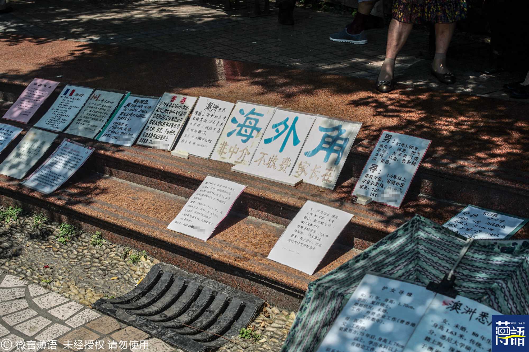 30多度的高温下,相亲角的大爷大妈为了子女的婚姻大事也是拼了。