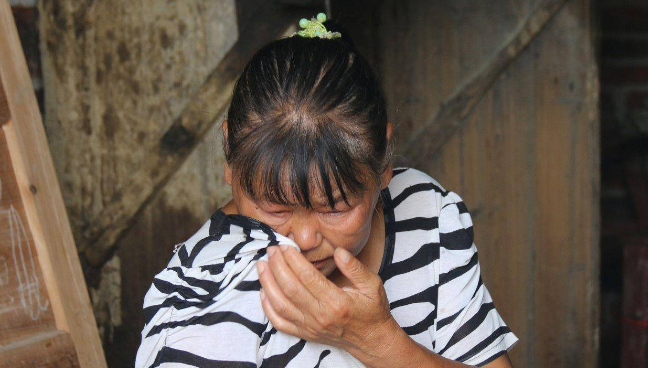 前夫罗开友看到曾经的妻子重现眼前,泪水唰唰直流。
