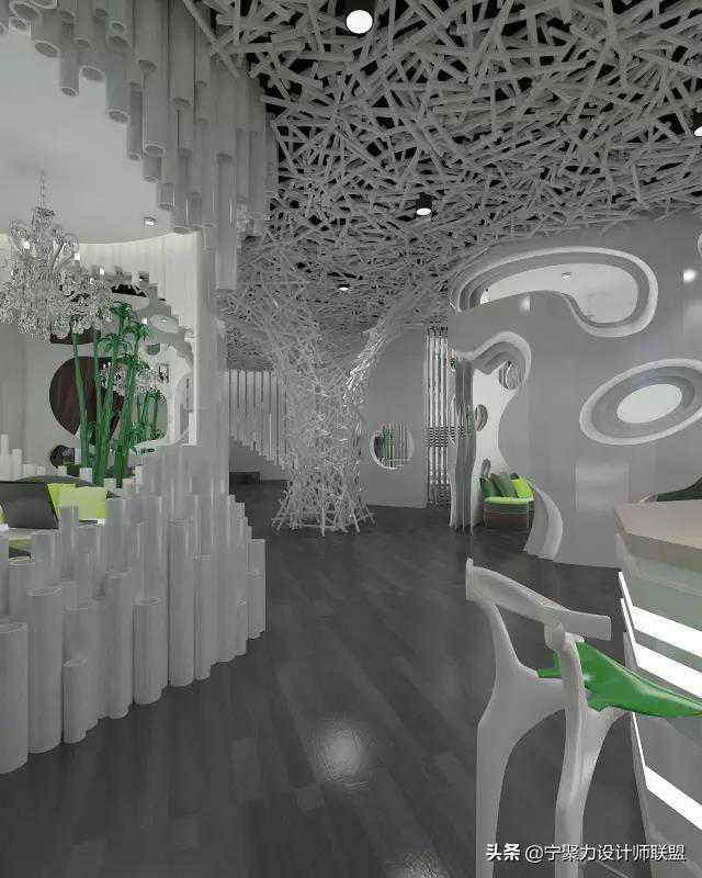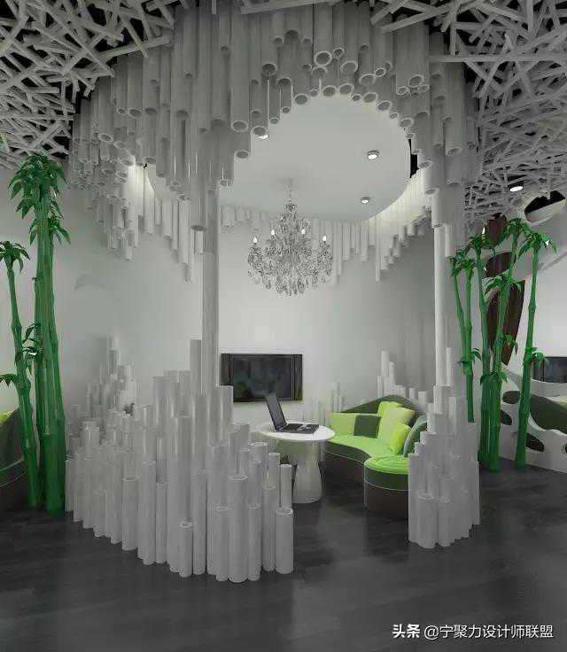 用长短不一的圆柱拼凑成流线型空间,既创意十足又浪漫唯美