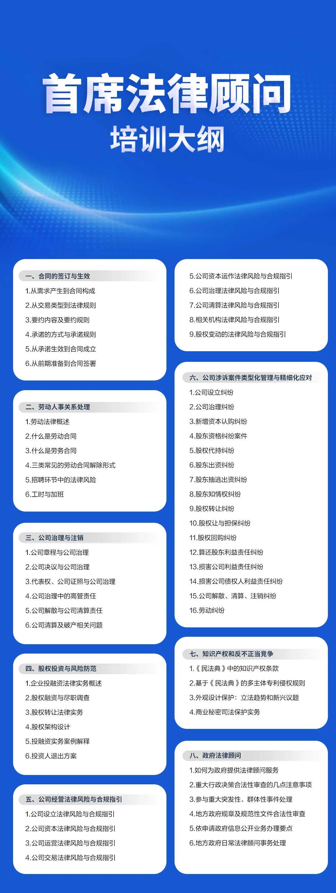 以下为首席法律顾问课程培训大纲: