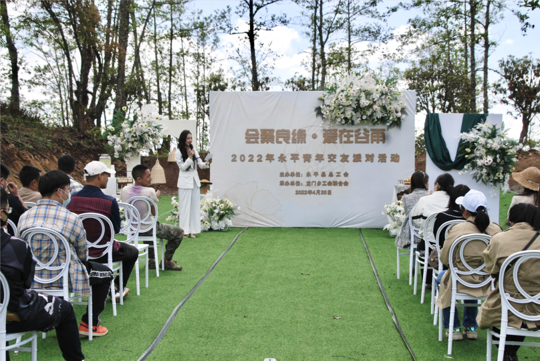 大理州永平县总工会、龙门乡工会联合会在龙门乡大坪坦村万亩茶园观景台东锐乐园举办2022年“会聚良缘爱在谷雨”派对活动。