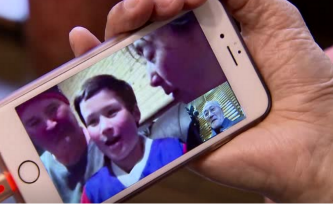 两人聊了一会之后,心情都慢慢平复了下来,覃老先生的女儿把手机镜头向旁边移了一点,介绍道:“这是您的外孙,八岁了。”接着她又让孩子跟外公打招呼。