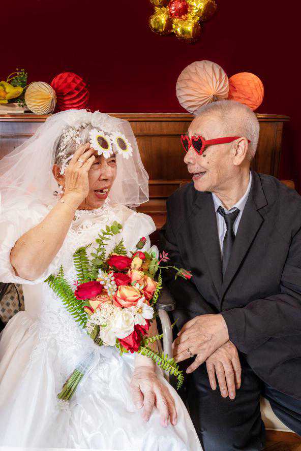 当真爱志愿者为涂奶奶画上精致的妆容,换上洁白的婚纱,爷爷看到奶奶的瞬间,脱口而出的“好美”,是对爱人最真情实感的表达。奶奶也动情唱起了年轻时两人最爱的歌谣,当两位老人满眼泪光又满眼爱意的看向彼此,时间在此刻静止。
