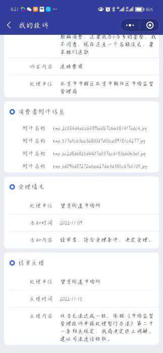 季先生从今年2月开始一直在维权中,进展不理想。他表示,前后咨询过多位法律人士,并且去当地派出所报警,但只是一番调节,无法立案。胡先生也曾多次向有关部门投诉要求退款,但双方无法达成一致,建议走司法程序。