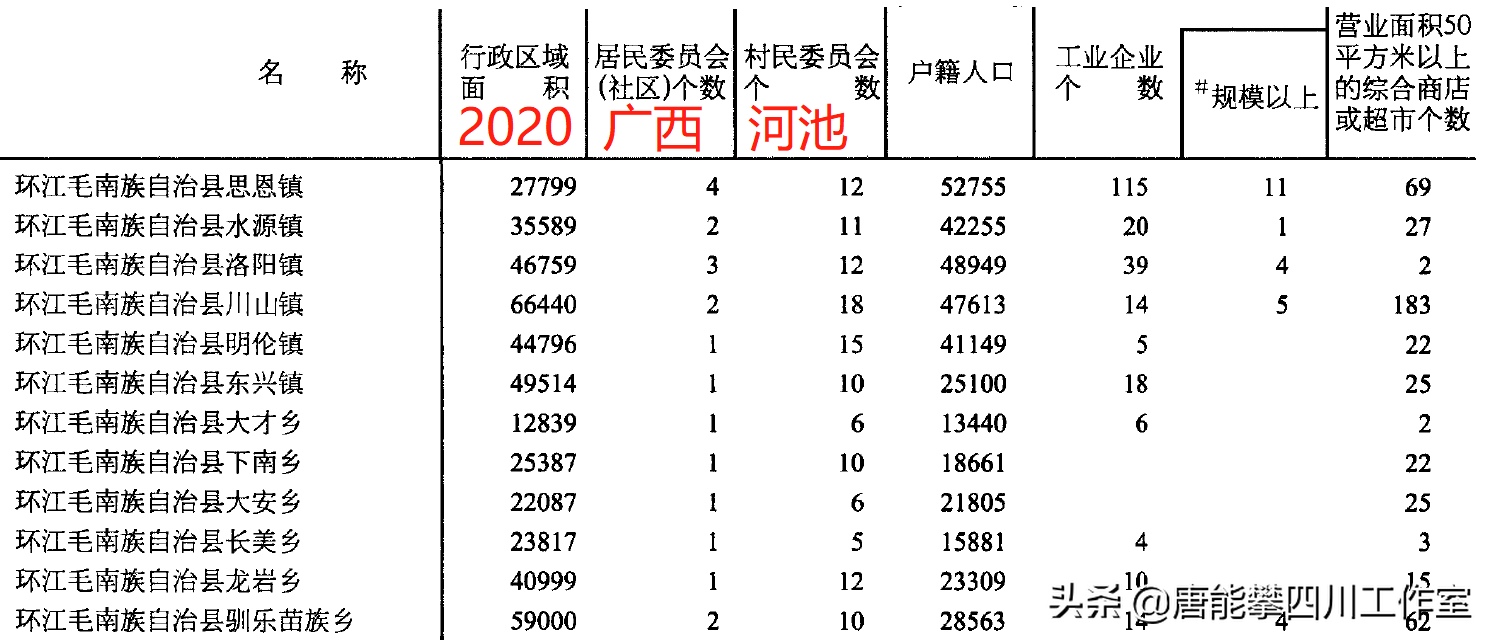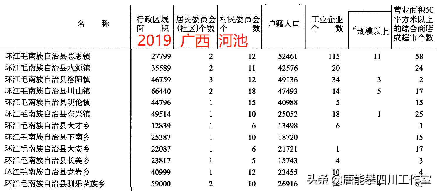 河池环江12镇、罗城11镇的变迁:人口、土地、工业…基本统计