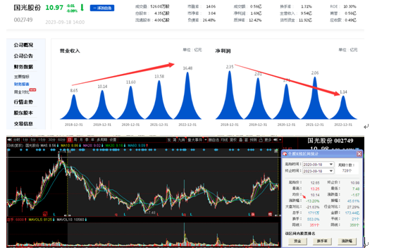 截至9月18日下午收盘,国光股份报收10.98元/股。据同花顺(300033)数据,最近三年,国光股份股价整体下滑13.20%。