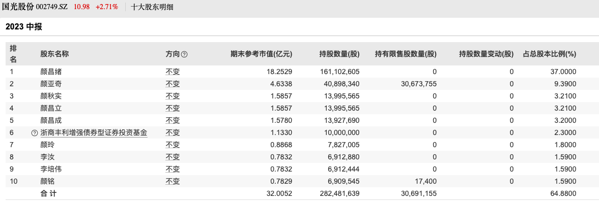 值得一提的是,对于此次离婚分股权事件,市场不乏“离婚式减持”的质疑。国光股份明确,本次权益变动后颜亚奇、胡利霞持续共同遵守关于大股东和董监高信息披露、减持额度、减持限制等相关规定。本次权益变动后两人合并计算大股东身份,合并适用《实施细则》相关减持规定。