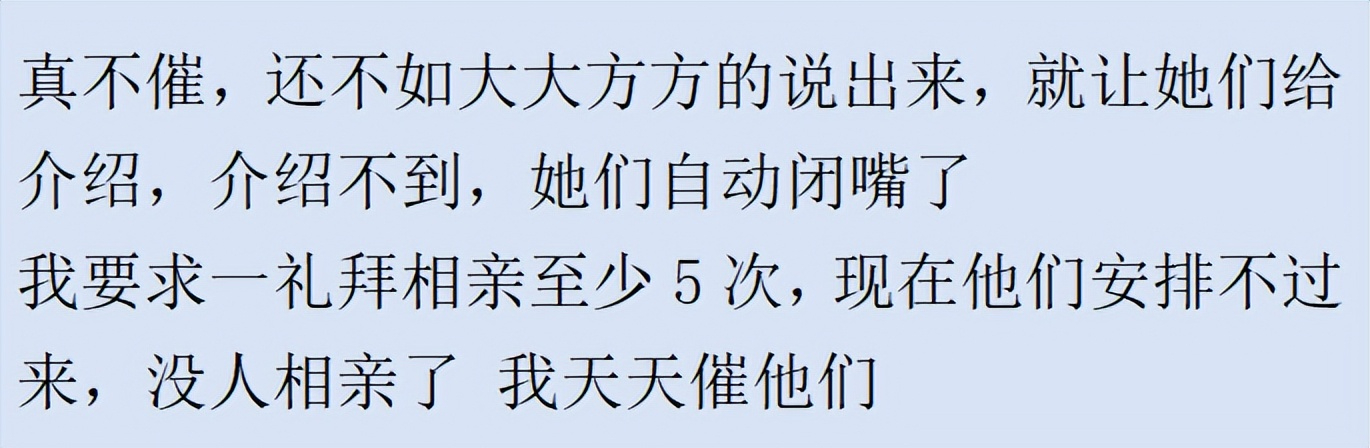 本文篇幅较长,且均为网友的亲自点评,一定会让你对应付长辈催婚有新的了解!!后面超精彩!!