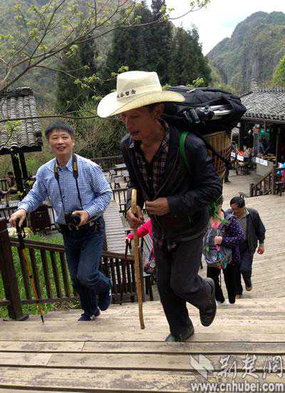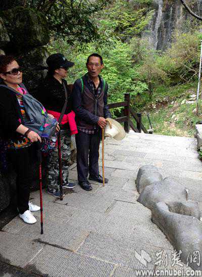 背篓哥刘成松在恩施大峡谷给游客做向导