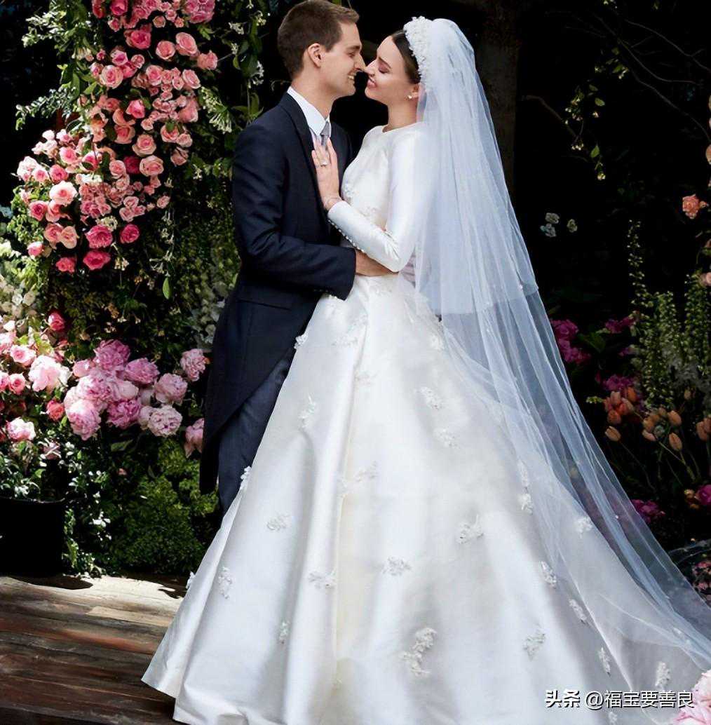 米兰达可儿的婚纱也来自DIOR,她老公是Snapchat创始人埃文,有111亿美元身价,这两的婚纱都相对比较传统。