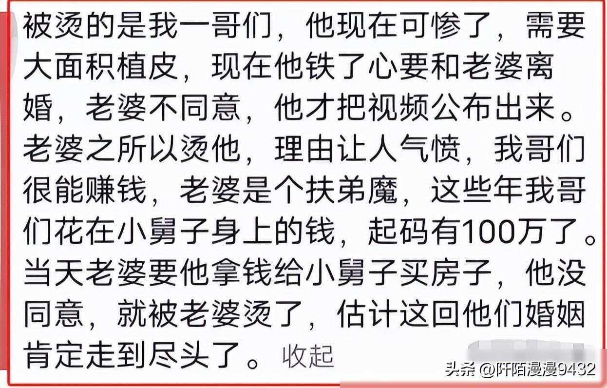 在婚姻中,争吵和矛盾总是不可避免的,但如果这些冲突演变成暴力,事情就变得不可挽回了。最近的一则新闻让许多人感到震惊:一位妻子因为争吵,竟然将开水泼在丈夫身上,导致丈夫严重烧伤,需要植皮治疗。然而,更令人意外的是,事发后,妻子居然跑回娘家,还坚决不同意离婚。这究竟是怎么回事?这对夫妻之间到底发生了什么样的矛盾,导致一场家庭争吵变得如此激烈?这个事件背后究竟隐藏了什么秘密?让我们一起来揭开这个令人不解的谜团。