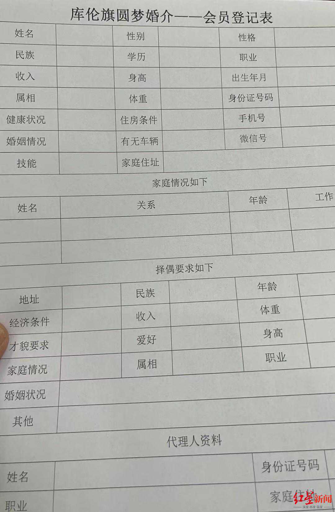 ↑来相亲的人,无论是线上还是线下都要详细填写登记表