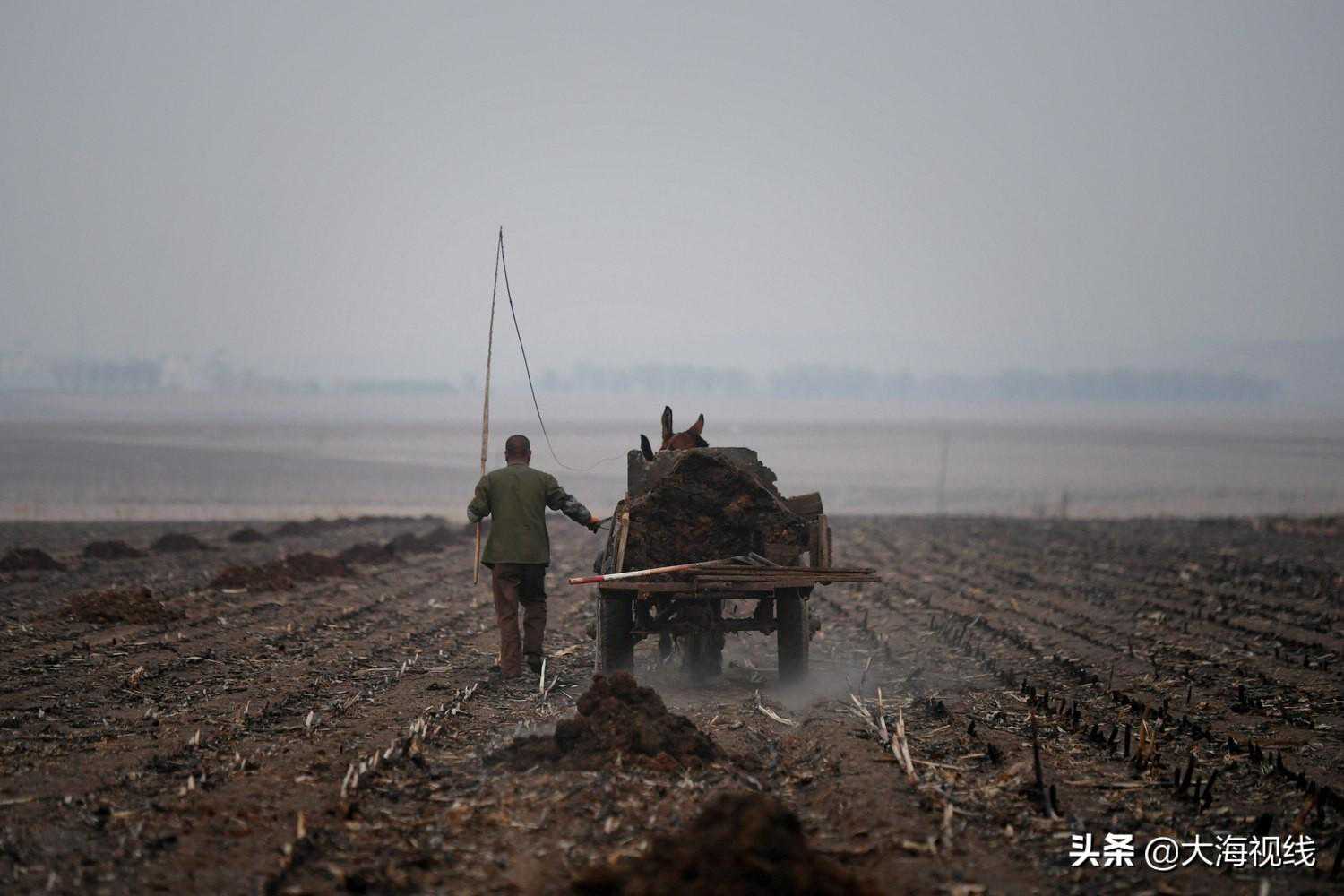 2020年4月6日,在苏家屯区陈相镇的田地里,一位农民赶着马车将农家肥运到田间,为新一年的春耕做准备。
