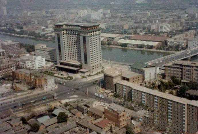 80年代初,海河西岸、大光明桥与解放北路交叉口处是一片旧厂房,存放着木料、煤堆和杂物。1986年,这个地方建成了一幢大厦,这几乎是当时天津最高的建筑,一共二十层,从外形看中西结合,绿瓦青砖、古朴典雅。这就是从八十年代中期到九十年代末天津最好的饭店,凯悦饭店。
