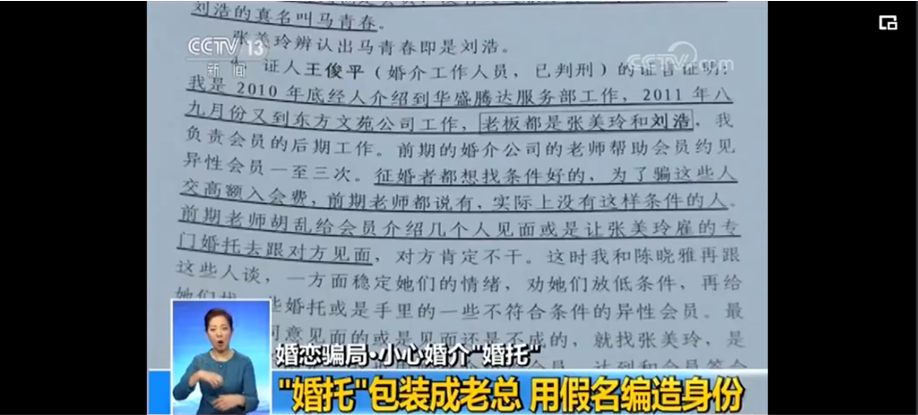 见面以后,婚介公司的工作人员就为双方引荐,把这个婚托介绍成是房地产公司老总或者是企业集团的负责人。