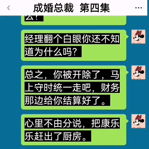 他一离开,康乐乐松了一口气,不由得坐下来大口大口地呼吸着。休息了一会,他平复了呼吸,也离开了包间,准备回到厨房继续工作。清理正在厨房表情阴沉,看到他,愤愤地哼了一声:康乐乐,你被开除了?康乐乐一愣:经理,为什么?经理翻个白眼:你还不知道为什么吗?总之,你被开除了,马上守时统一走,财务那边给你结算好了。