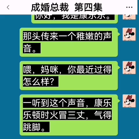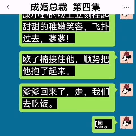 电话那头,正是他的儿子康小野。康小野借了欧家佣人的电话,躲在卫生间笑眯眯地打着电话。妈咪,你不要生气呀,我在爹爹家里呀,康小野。康乐乐扶额,面对儿子的嬉皮笑脸,他半点办法也没有。论情商,康小野比他还要高。你没有什么daddy,别打扰人家生活,你快回来,要不我去接你?