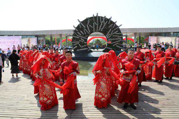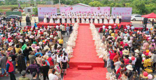 中国江苏网5月21日宿迁讯(记者薛惠芹)2020年5月21日是网络情人节,寓意着“爱你爱你,你是我的唯一”。今天上午,由宿迁市委宣传部,市文明办、市妇联、团市委主办的“爱如夏花简约唯美”2020·宿迁市集体婚礼活动在三台山国家森林公园衲田花海举行。本次采用县市两级同步、线上线下联动的方式展开,除了三台山外,还在泗阳县植物园、泗洪县大王庄党性教育基地、沭阳县桑墟镇设了三个会场,宿迁市县共计150对新人参加了本次集体婚礼。150对因抗击疫情而延误婚期的新人们共聚一堂,喜结良缘。