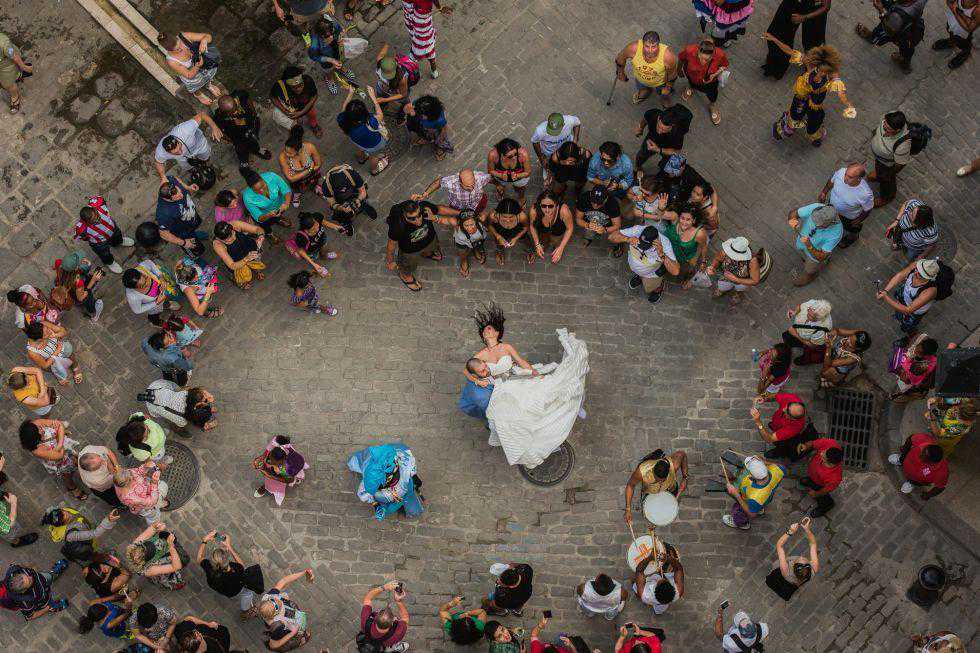 从这个角度拍街头的婚礼人群,或者可以排列成一个图形呢