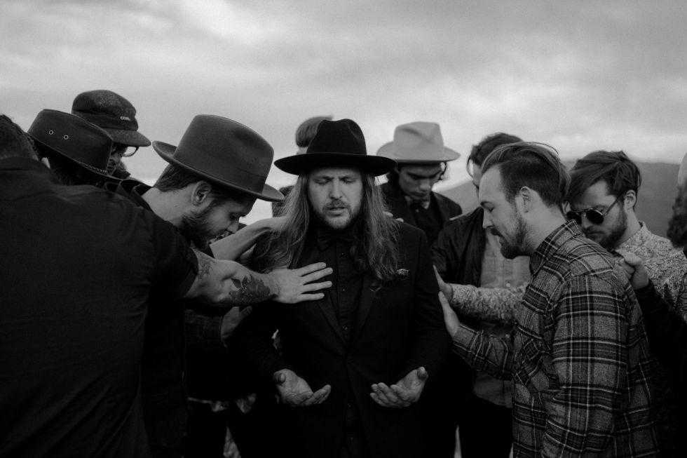 俯瞰的角度拍摄草地婚礼,处理成黑白色之后,呈现不一样的美