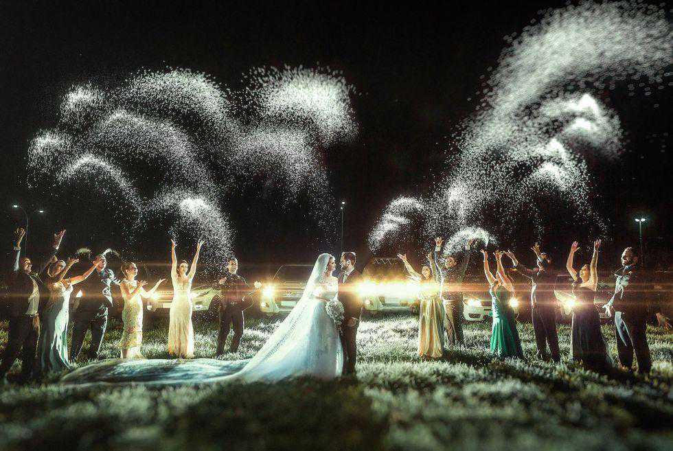 每个宾客手上拿一支可以点燃的小烟花,这种感觉太棒了