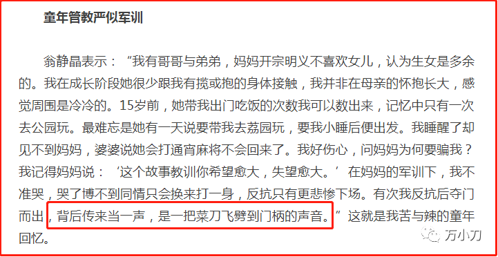 幸福的童年可以治愈一生,不幸的童年需要一生治愈。或许正是因为苦涩的童年,导致翁静晶极度缺爱,所以她长大以后,才会那么骇人听闻地追爱。