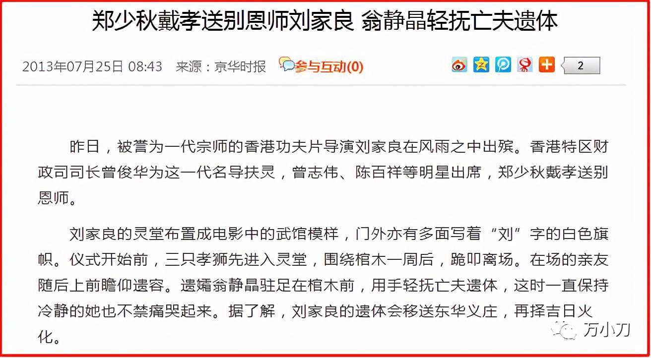 最后,刘家良在翁静晶怀中安然离世,享年79岁。