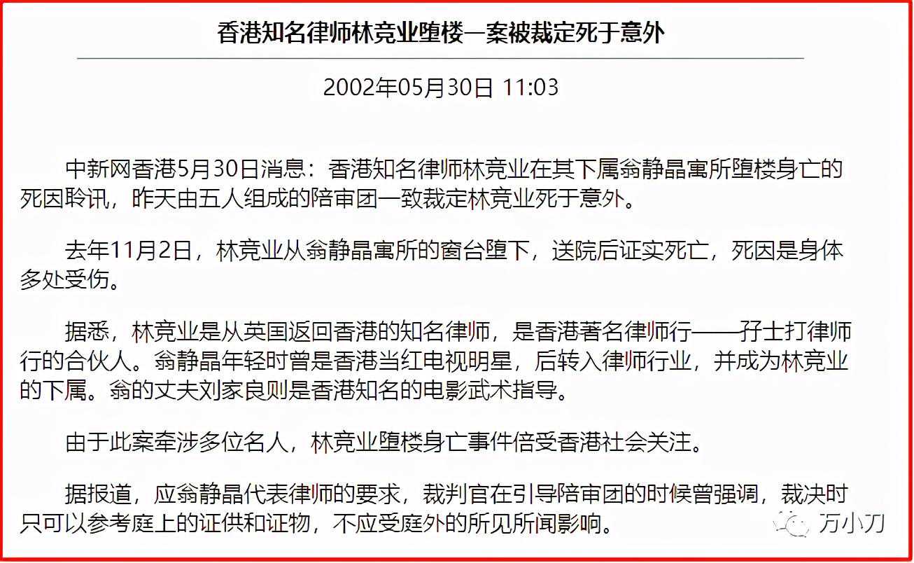 此人不是别人,正是翁静晶所在律师行的上司林竞业。后来林竞业被送到医院,抢救无效身亡。