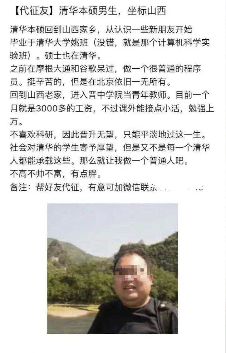 最近,一则清华男子征婚的消息