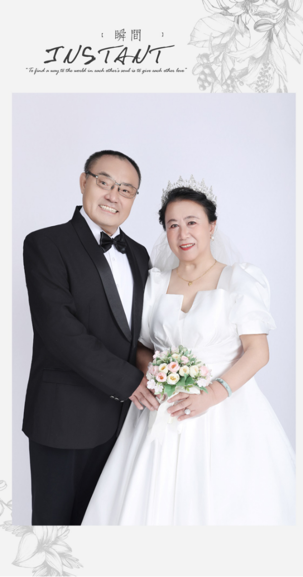44年前,付阿姨与爱人成为合法夫妻。由于条件有限,一块手表就是当年婚礼最大得物件了。44年间,他们生儿育女,直至孙辈出生,也没有拍过一张正式的、有纪念意义的合照。“这次社区免费为我们老年人拍婚纱照,知道后可太高兴了,终于可以弥补年轻时候的遗憾。”付阿姨表示,跟丈夫说了这个好消息后,一向不喜欢拍照的他却一口答应了。当天一大早,二人满怀期待挑选婚纱、礼服,接受化妆,等待拍摄,既期待又紧张,仿佛回到了初恋时的甜蜜时光,幸福之情溢于言表。