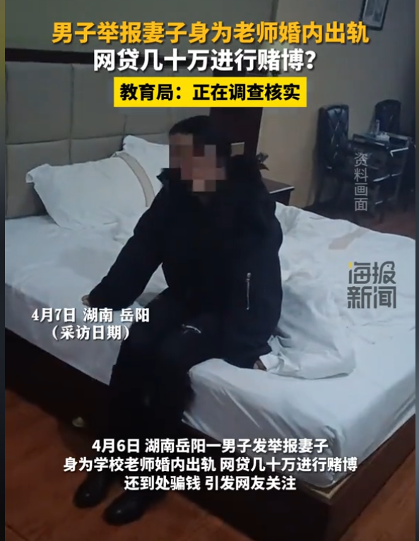 4月6日,湖南一名网友就在网上发帖,举报自己当老师的妻子。