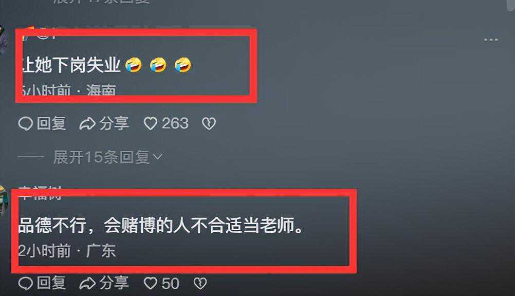 还有人称,应该让她下岗失业,品德不行的人不适合当老师。