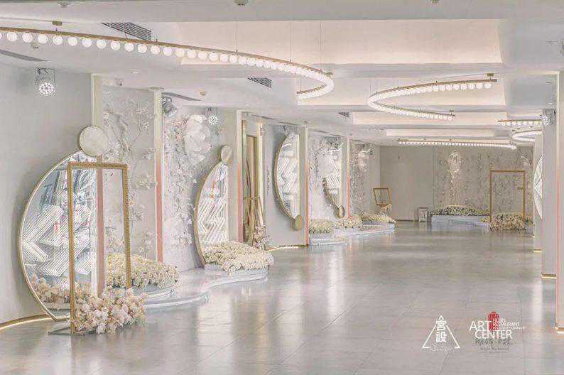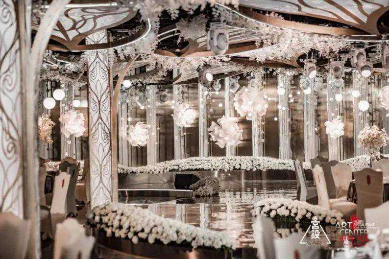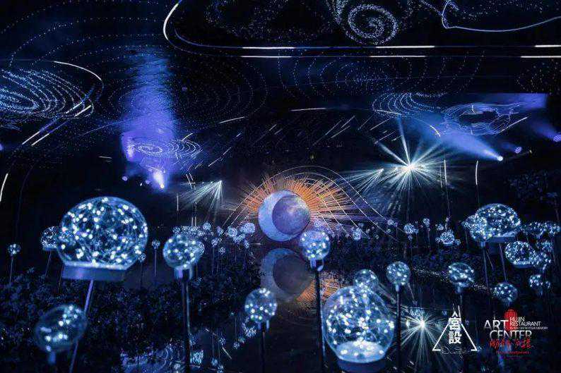 十二星座与浩瀚星云相互辉映,搭建起浪漫大气的穹顶,新人行进至日月近前交换誓言,到场的嘉宾仿佛置身于浪漫星空之下,与全宇宙一起见证一对新人的爱与永恒。