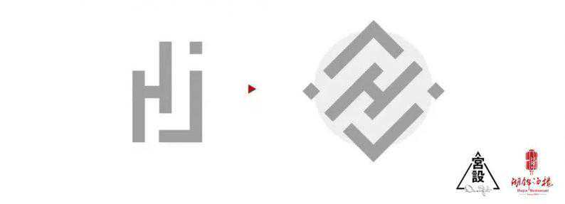 图案由“湖锦”二字的拼音首字母”H”、”J”变形组合,方正对称的图形象征企业驰骋荆楚大地多年的大气中正,图形宛如一闪中式门窗,开放交错的字母又体现了企业的多元与包容。