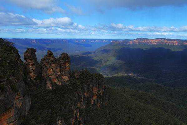 蓝山最著名的风景当属三姐妹峰。相传旧时有澳洲土著三姐妹爱上了族中仇人后裔的三兄弟,勇敢的三姐妹为了反抗封建恶势力,为爱化成三座倔强的岩石,即三姐妹峰。