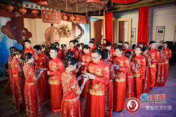 一大早,新人们便陆续来到厦门惠和石文化园进行化妆。不少新人表示,因为太激动一晚上都没有睡着……多对新人还带来了多人超强亲友团一起来见证他们的幸福,现场还有专业摄影师为他们留下幸福写真。当日下午,新人们更是组成了强大的集体外拍阵容,花样打卡、创意航拍及献礼百年,展示新时代新青年的新风尚,形成了一道靓丽风景线。傍晚时分,新人们手牵连理绸,在“缘钱引路”下,来古厝举办成亲大典。20对新人们依次进行跨马鞍、合卺礼、结发礼、敬茶礼、戴春花等既有传统元素也有新时代元素的婚礼环节,郑重地许下爱情承诺,结为百年之好。