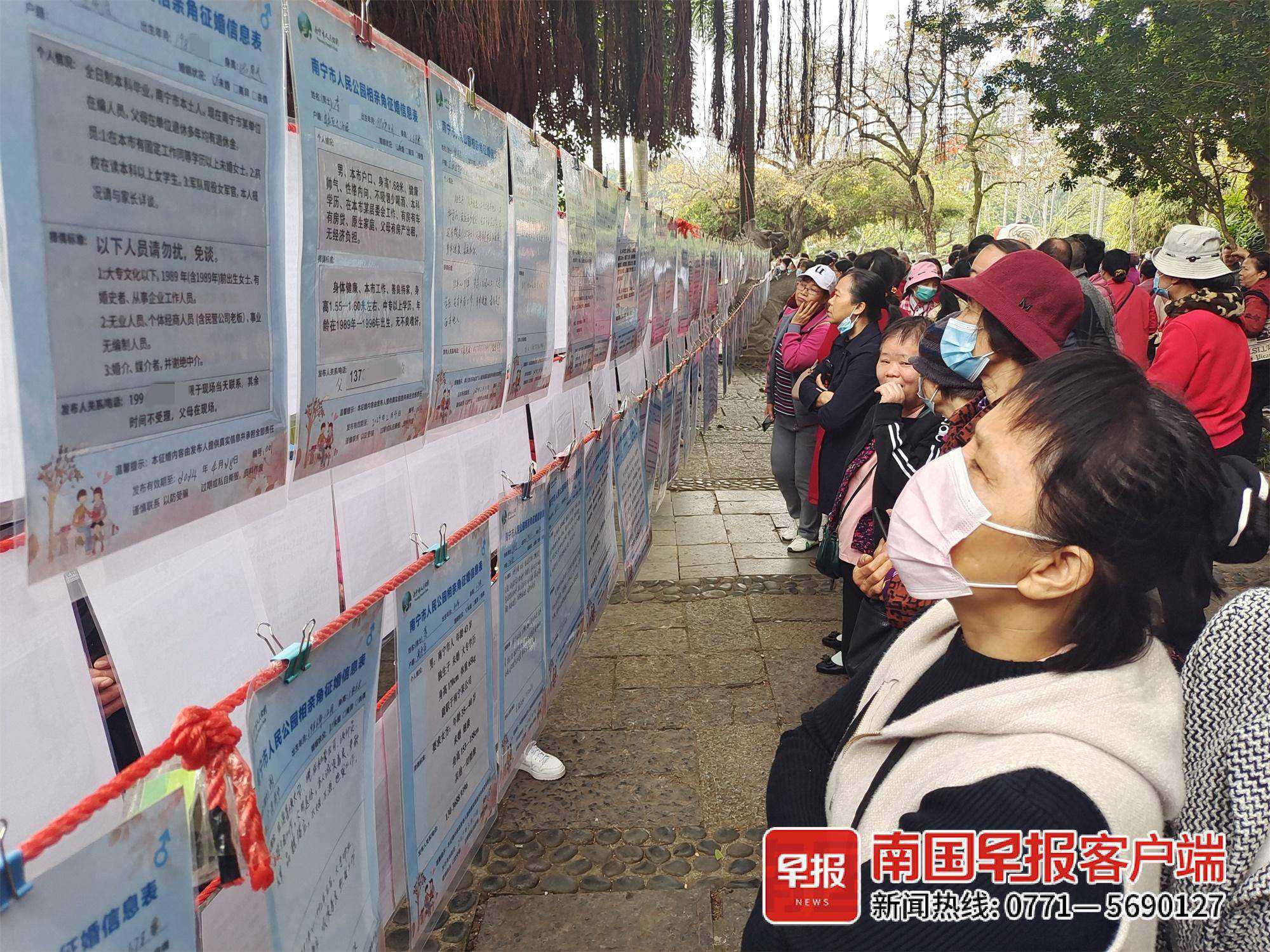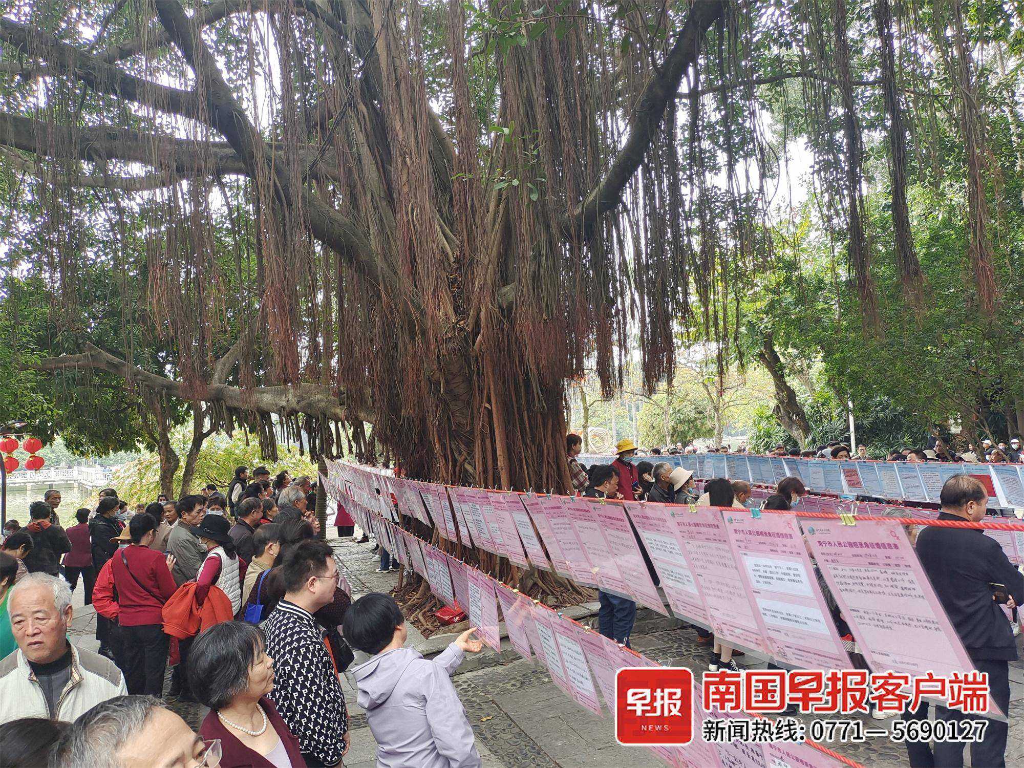 经历过春节家人亲戚的催婚,部分适婚男女有了找另一半的紧迫性。2月17日上午9时,南宁市人民公园九曲桥旁大榕树下的相亲角,迎来了龙年新春的第一次活动,660多份单身男女的资料整齐地悬挂在相亲角的红绳上,静候有缘人的到来。