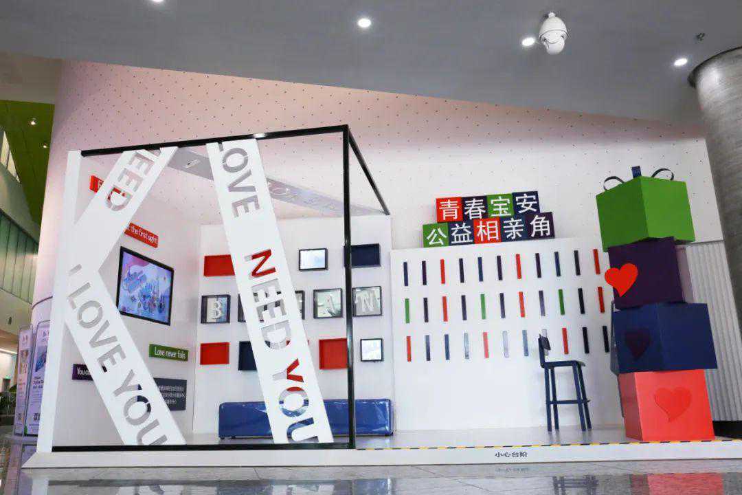 相亲角划分为公益相亲墙、陈列墙、交互区、爱情测试机、休息区、线上互动区等功能区域。
