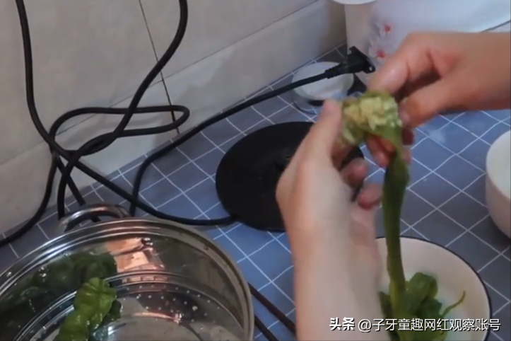 看到长在茎上的茄子,元元感到非常震惊,直呼长知识了。有时候,森森会尝试做自认为是黑暗料理的手撕辣椒。
