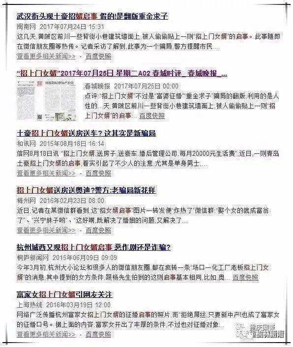 但是,小编又要来泼凉水啦!醒醒吧,都是骗局,类似这种招女婿上门的“套路”,早已经在全国各地出现过,内容如出一辙。