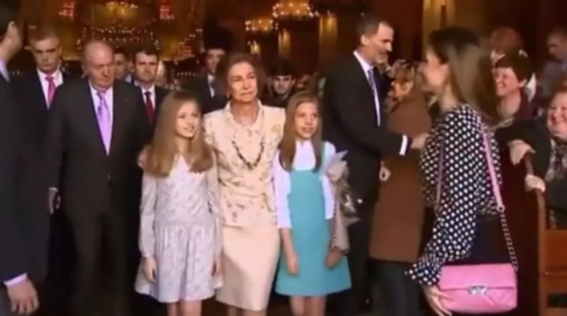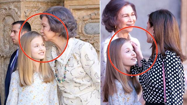 就在西班牙王室举家参加复活节的活动时,婆婆亲昵地亲了一下自己孙女的额头,孙女也表现得十分高兴能得到奶奶的喜爱。